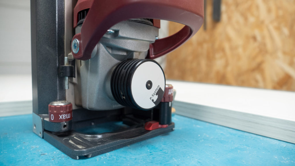 Avec notre Zeta P2 on va pouvoir se passer de colle. Et ainsi pouvoir faire des assemblages démontables avec son P-System. Ce mécanisme ingénieux, va créer deux gorges en montant et descendant très rapidement la lame lorsque on sera en butée de fraisage. On placera Un Clamex P14 ou P10 mâle et femelle (le numéro correspond à la profondeur) et grâce au petit trou que l’on aura fait au préalable à l’aide du gabarit fourni.