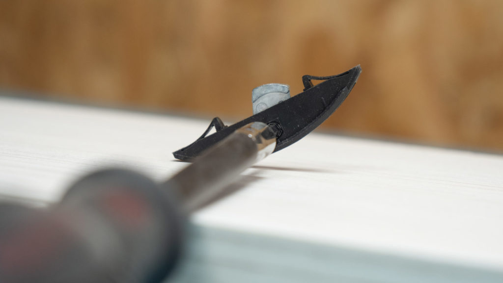 On pourra insérer la clé pour faire tourner le loquet pour rapprocher et verrouiller l’ensemble. Les Clamex sont les plus connus avec cette machine mais nous avons d’autres consommables complémentaires et tout aussi intéressants. Comme le Divario P18 avec ses deux parties qui s’assemblent par coulissement . Très pratique pour glisser des Tablettes dans un caisson par exemple. Cet assemblage sera invisible et démontable. Le Tenso P permet de faire des assemblages invisibles et non démontables en rajoutant de la colle. Ce consommable fait office de serre-joint interne. Donc on n’aura pas besoin de serre-joints pour maintenir son assemblage. Très pratique surtout si l’on souhaite assembler des pièces avec des coupes d’angles.