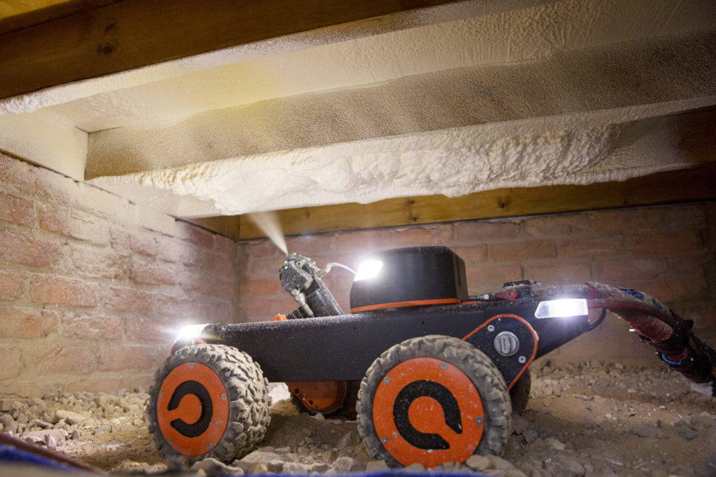 Après plusieurs contacts et différentes démarches, le groupe Mirbat a sélectionné un produit et un procédé totalement innovant dans le secteur de l’isolation des sols « le système de polyuréthane projeté ».